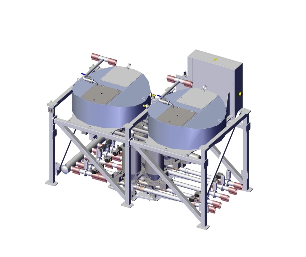 Onze kleincomponenten installatie 400L heeft de mogelijkheid om gelijktijdig naar maximaal 5 lijnen te doseren. - Geschikt voor alle soorten droge kleincomponenten